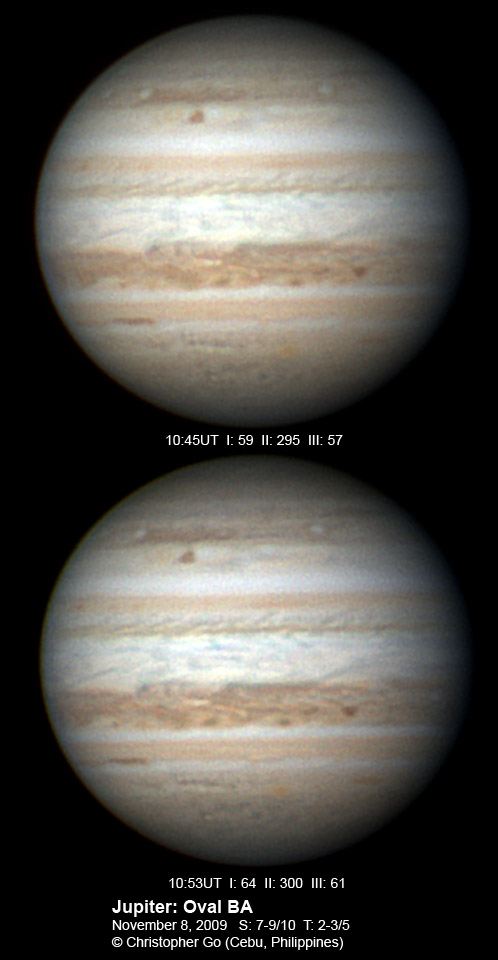 2, 2009 Another night of poor seeing. Super Typhoon Nida is affecting the conditions here. Oval BA looks dark but other than that nothing much is resolved.