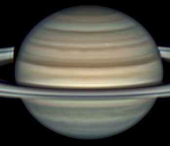 around 70deg here in Cebu. These images were taken using a Celestron C14 mounted on an Astrophysics AP900GTO mount and a QHY5III678M and the QHY5III585C camera. RGB is done using a set of Chroma Technology RGB filters on a Starlight Xpress Motorized filter wheel. Methane band images are done using a Chroma Methane Band filter (889nm 18nm bandpass). Amplification is done using an Astrophysics Convertible Barlow working at 2.5X. Image acquisition was done using Torsten Edelmann's Firecapture 2.7 software. All images are NORTH UP! Processing was done using AutoStakkert! and Registax. For info on Saturn's belts and zones please click this link. You can also see my past images of Saturn at the ALPO Japan Kansai Branch site.