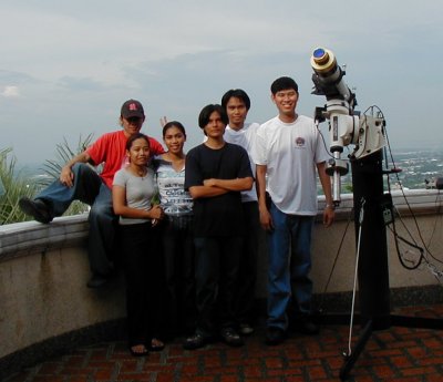 The day started with rain with because of a Tropical Storm in Luzon and a tropical depression east of Mindanao. Things didn't look good. A few friends of mine from the Astronomy League of the Philippines from Manila came over to witness the event. A public activity was organized by the University of San Carlos Astronomical Society. This event was held the the soccer field of the University of San Carlos at Talamban, Cebu City, Philippines. It rained at about noon time then cleared a few minutes after. The clouds rolled back it a few minutes after first contact! It then rained so hard that Allen Yu wasn't able to keep his equipment. But after the rain, it cleared at around 3:00pm giving us an opportunity to image the rest of the transit. |